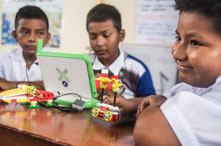 La iniciativa busca desarrollar competencias y capacidades de comunicación en los niños y niñas de primaria, con el soporte de la robótica educativa y las laptops X/O. Se pretende desarrollar las capacidades de expresión oral, comprensión de textos y producción.