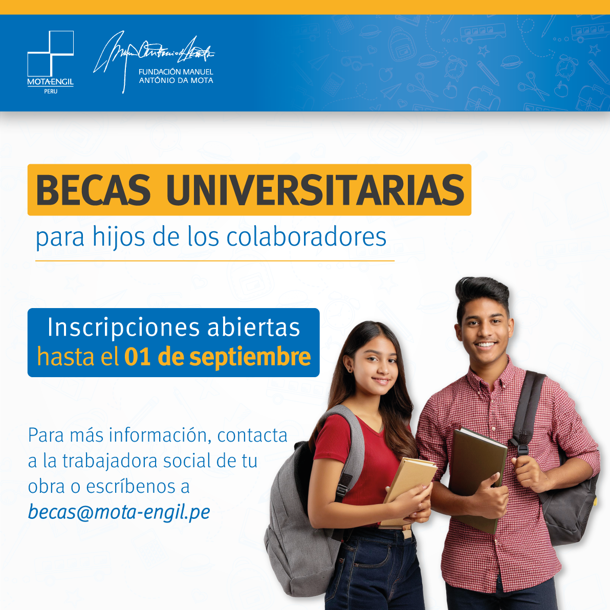 Para aplicar presenta la Ficha de Inscripción y los documentos solicitados al área de Bienestar Social o envíalos como adjunto al correo becas@mota-engil.pe en formato PDF.